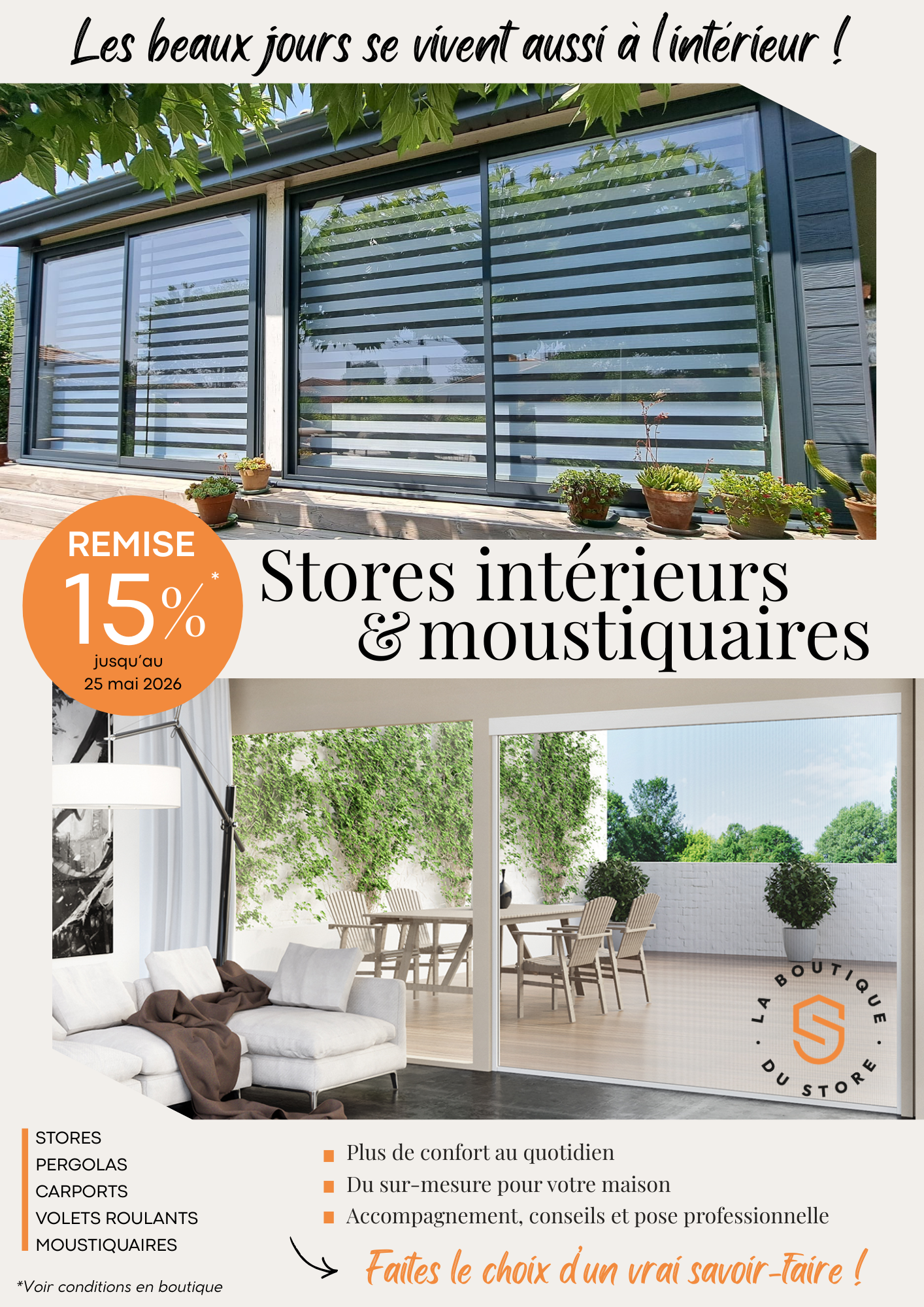 Enfin, sachez que la Boutique du Store ne se limite pas à la pose des pergolas et nous proposons d’autres produits dont les prix sont adaptés à tous les budgets comme : stores intérieurs et extérieurs, volets roulants, moustiquaires, voiles d’ombrages ou parasols.